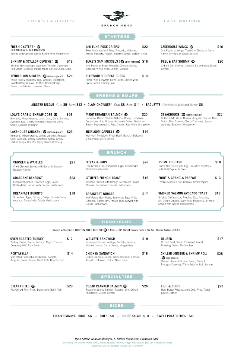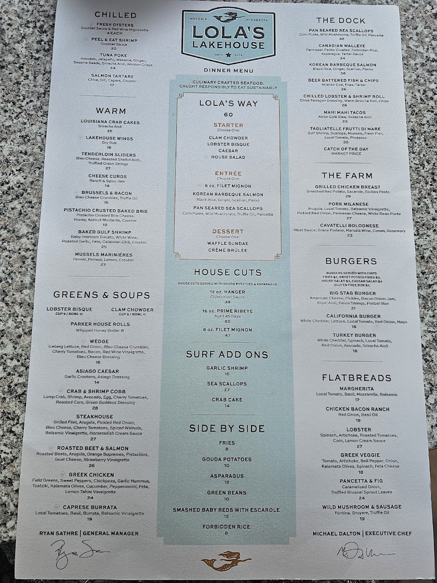 Romaine, Mixed Greens, Lump Crab, Garlic Shrimp, Avocado, Egg, Heirloom Cherry Tomato, Roasted Corn, Green Goddess Dressing